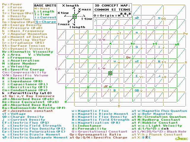 To depict the four MKSA core concepts of the SI in three dimensional gector spaces and present the density of information and proposed structure in common two dimensional media, some of this material has has employed the debatable convention of treating permittivity, [k], as dimensionless and associated with no amount of displacement. As for a helicopter pilot flying into Manhattan with only a street map, the contention has been that even a map of insufficient dimension is better than none at all, especially if the GDA technique is seen as an alternative evolution of log tables and multidimensional use of mathematical language. With the four dimensional mappings included in this writing, it is hoped that the advantages of the various formats will be even easier to recognize.
